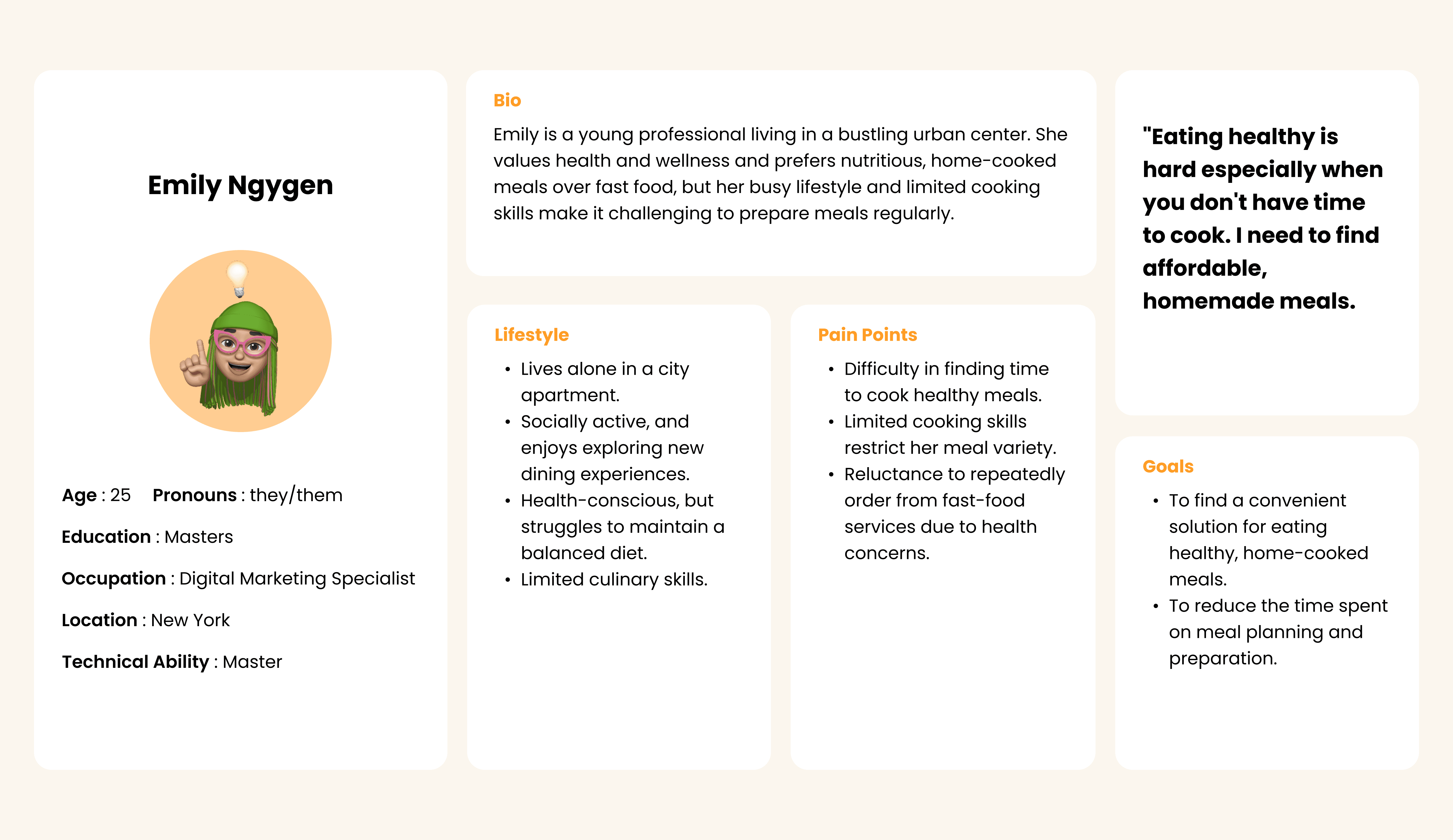 People who values health but lacks the time or skills to cook.