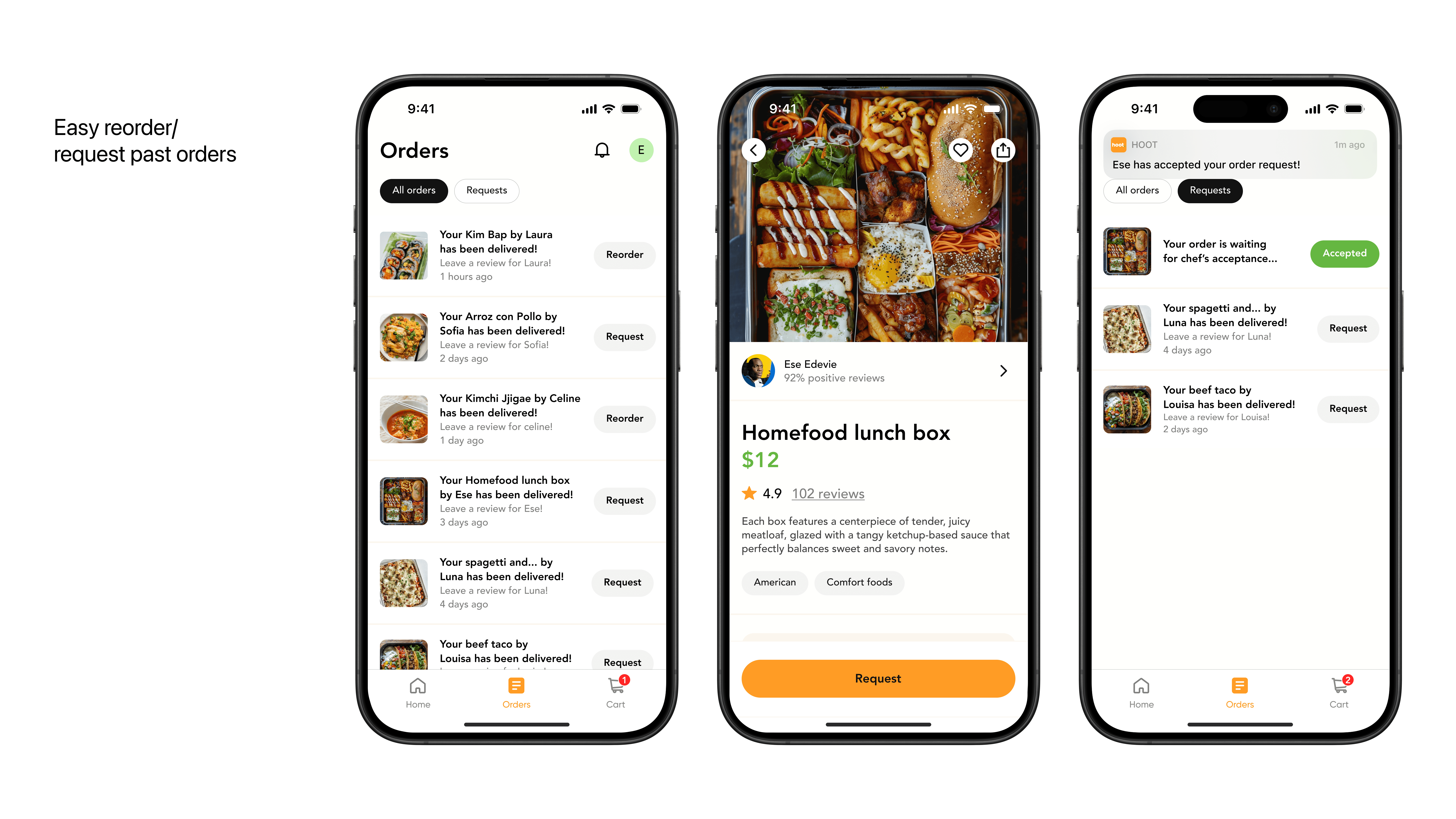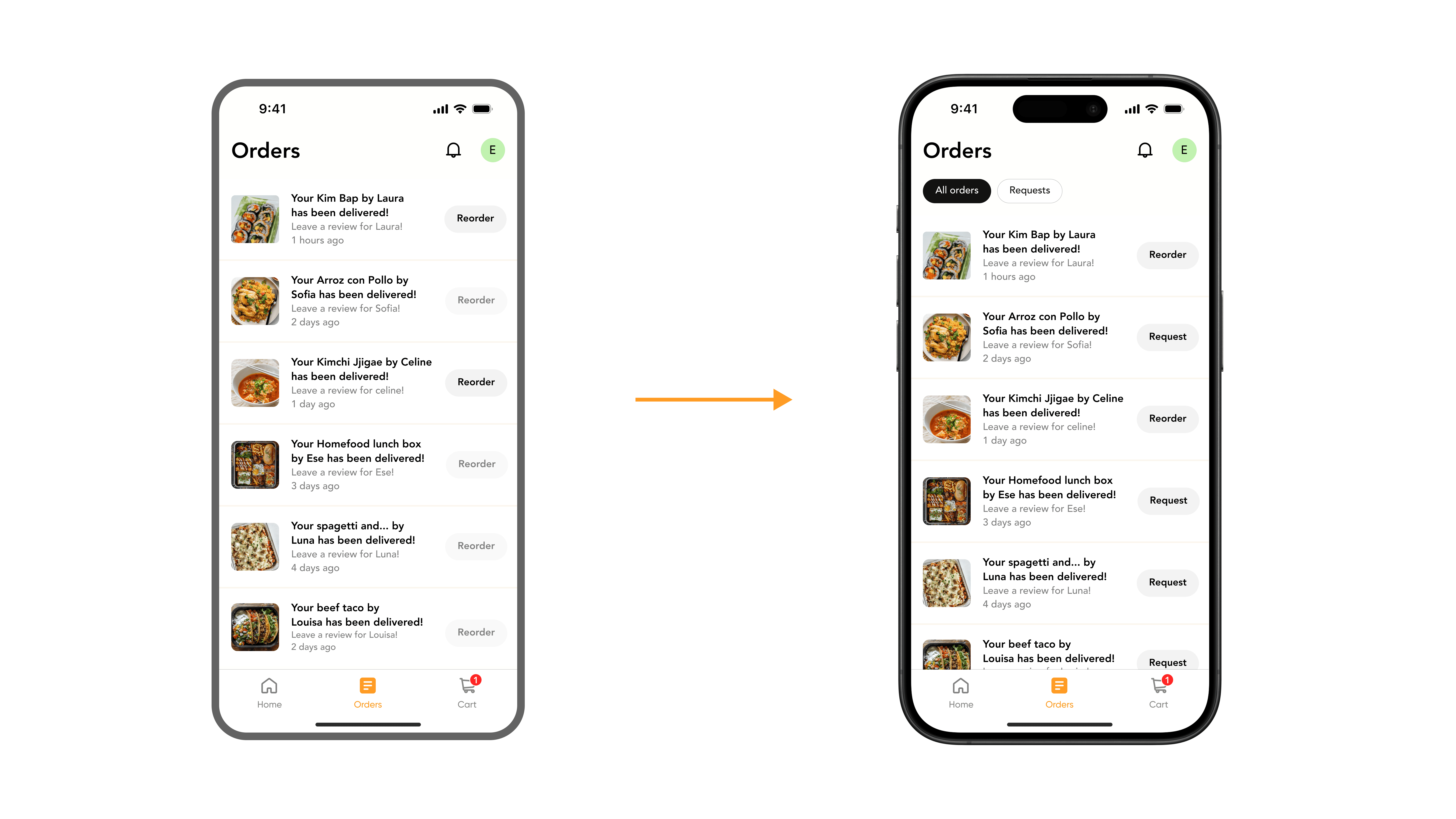 To support this, a reorder option was added, and when reordering was not available, users could easily request the same order again with a single action.