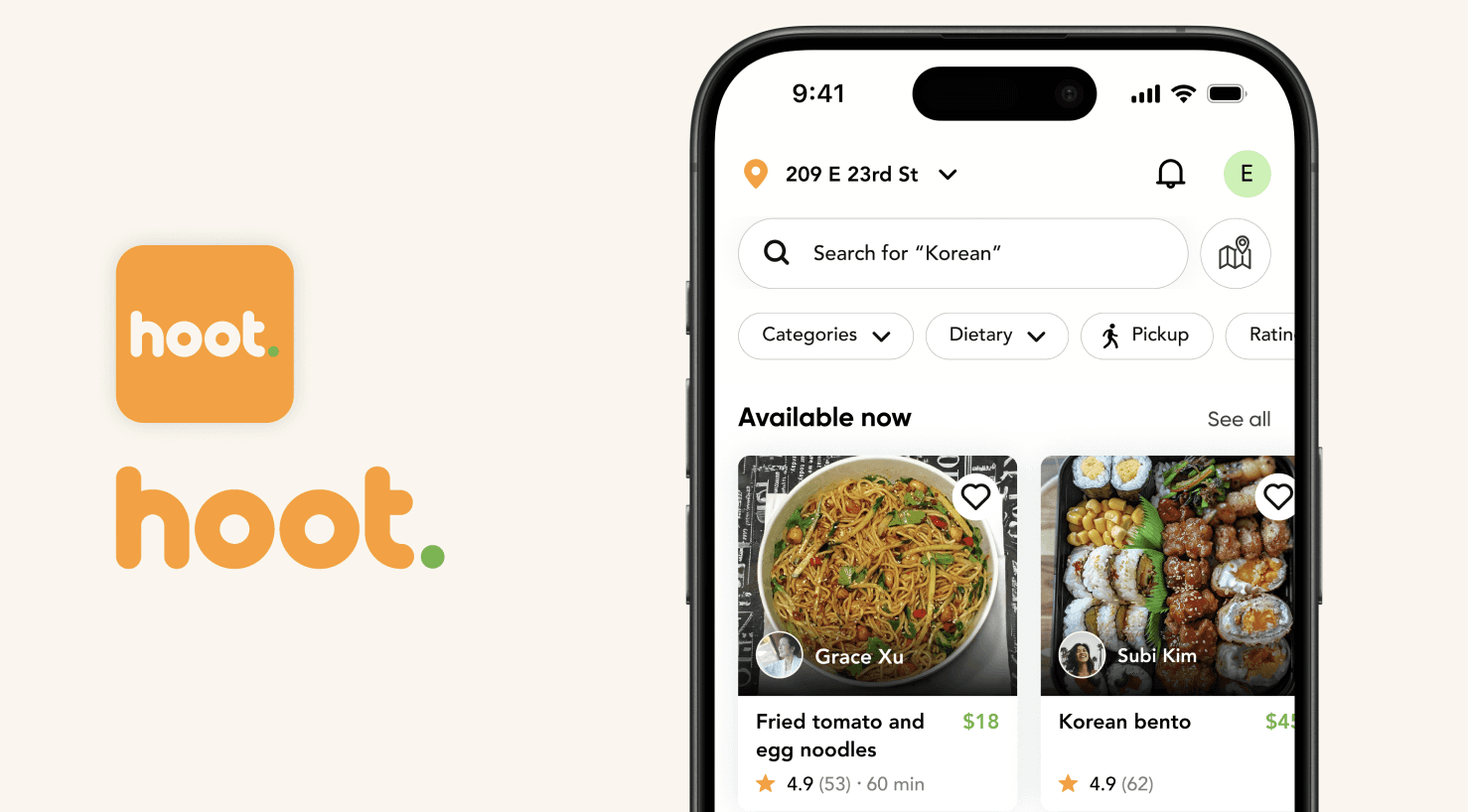 HOOT. connects users with local moms and chefs to easily buy or reserve a variety of