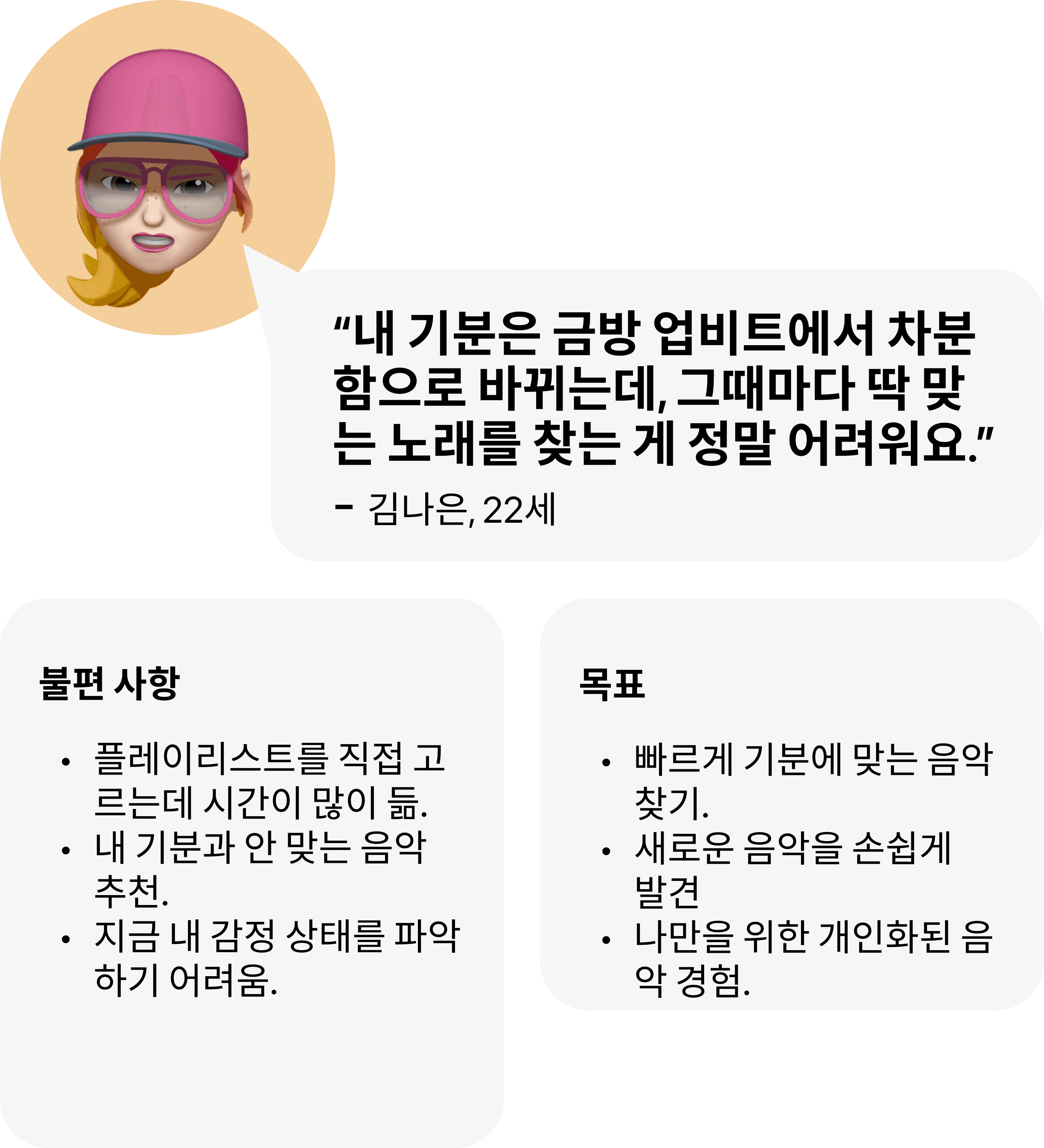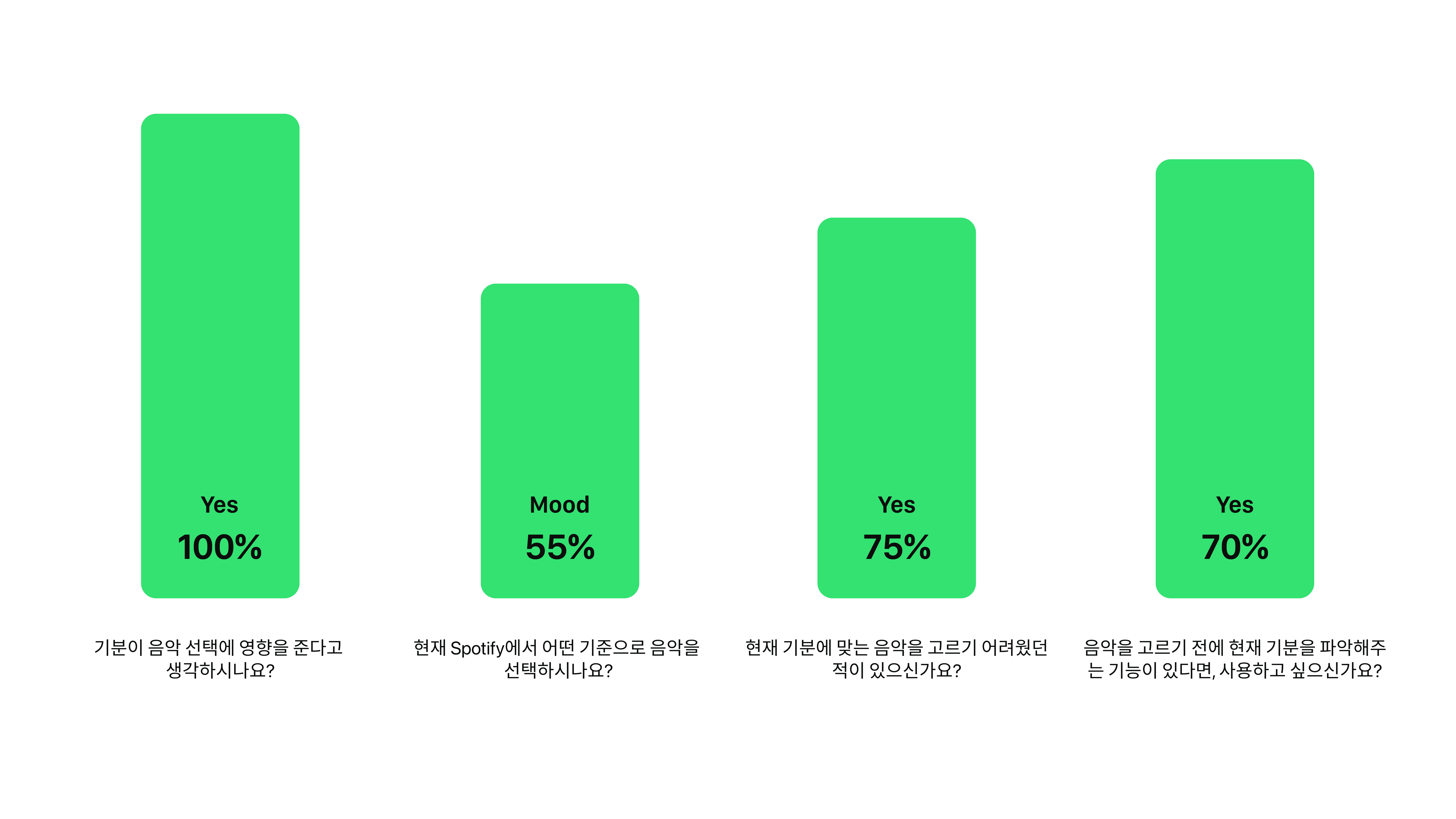 전체 사용자 중 75%가 현재 기분에 맞는 음악을 찾는 데 어려움을 겪는다고 응답했습니다.