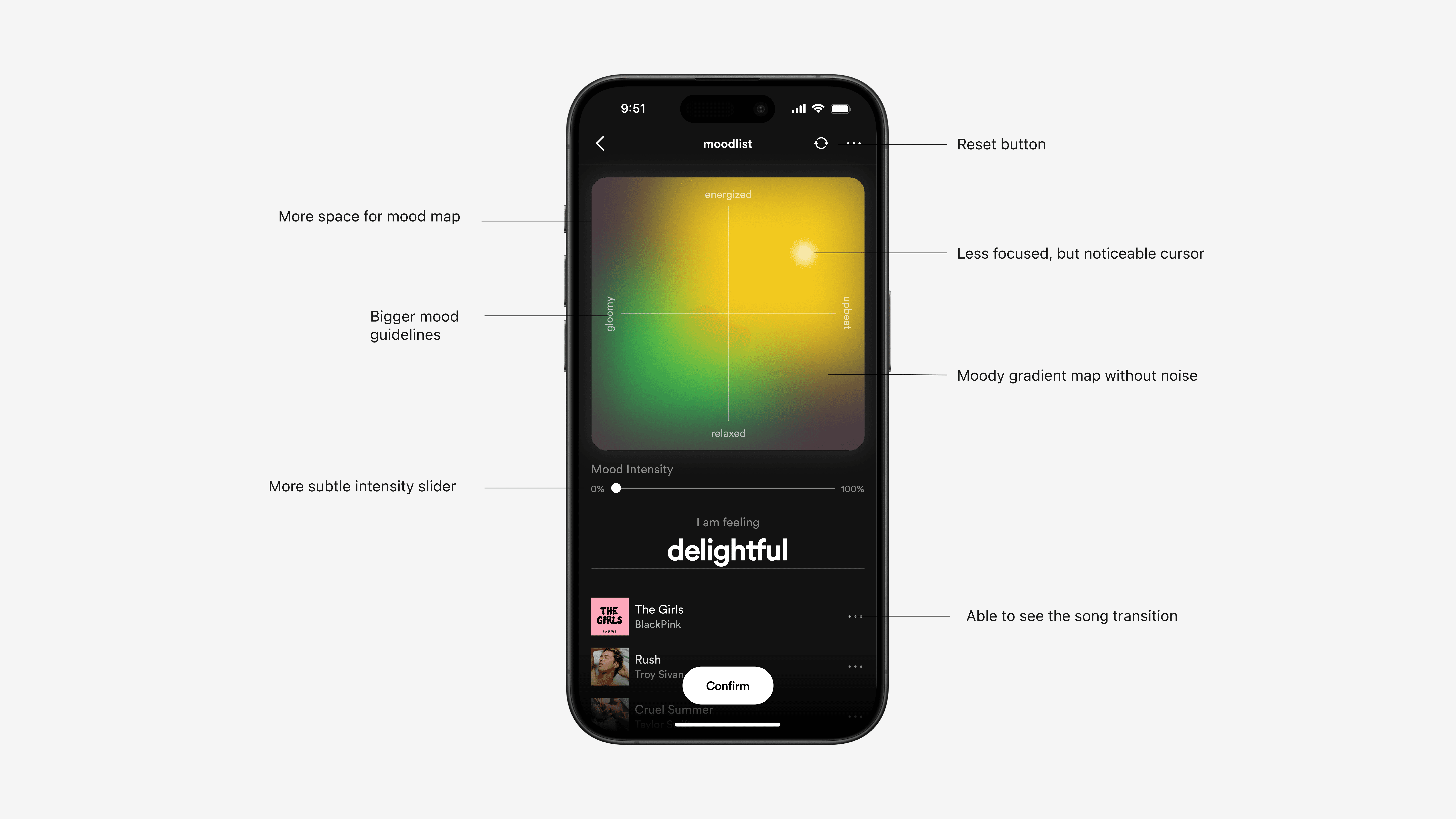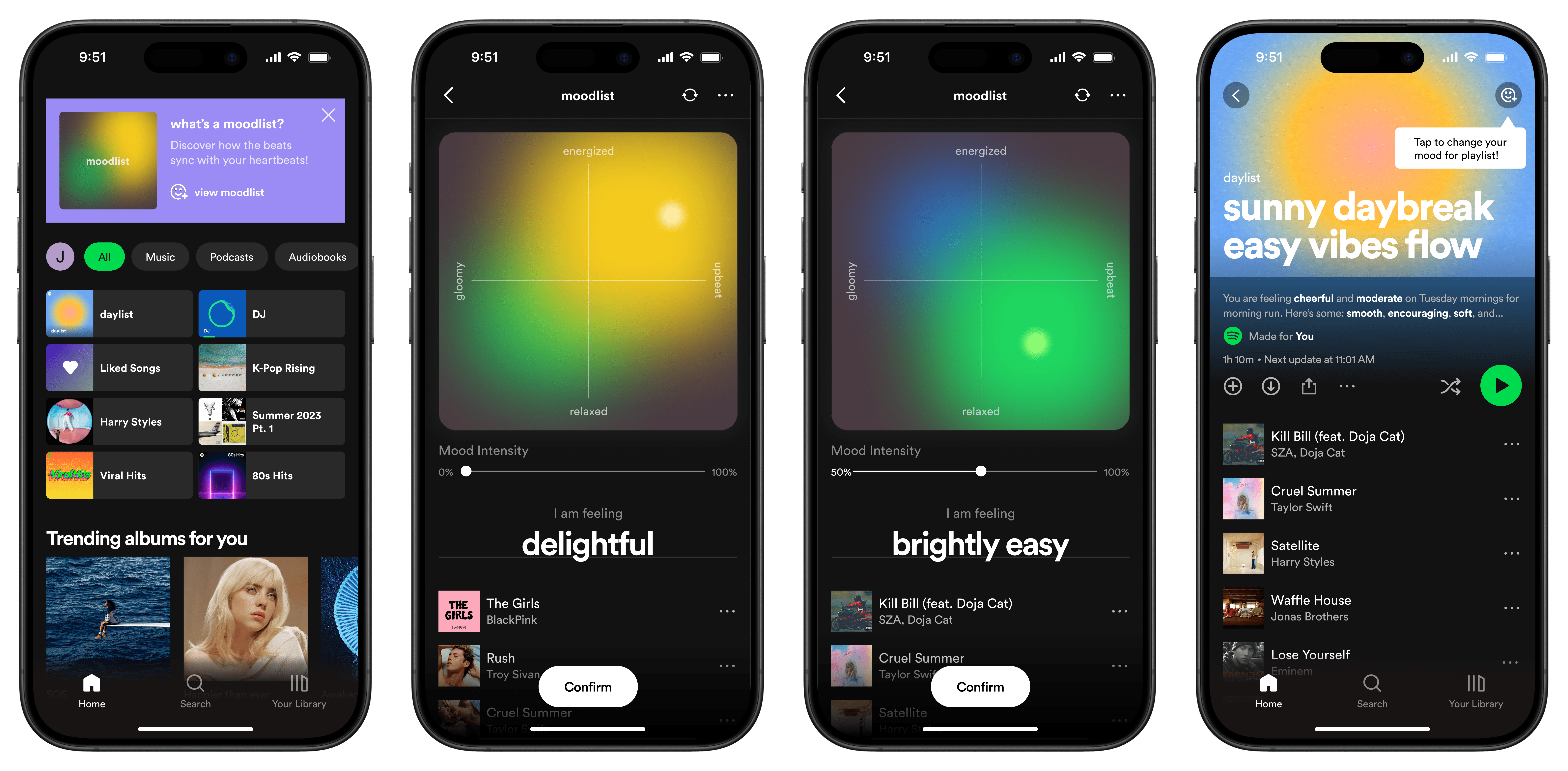 A new feature for Spotify that tracks a user’s current emotional state with an interactive tool and immediately creates a more hyper-personalized playlist that matches the user’s specified mood of the moment.